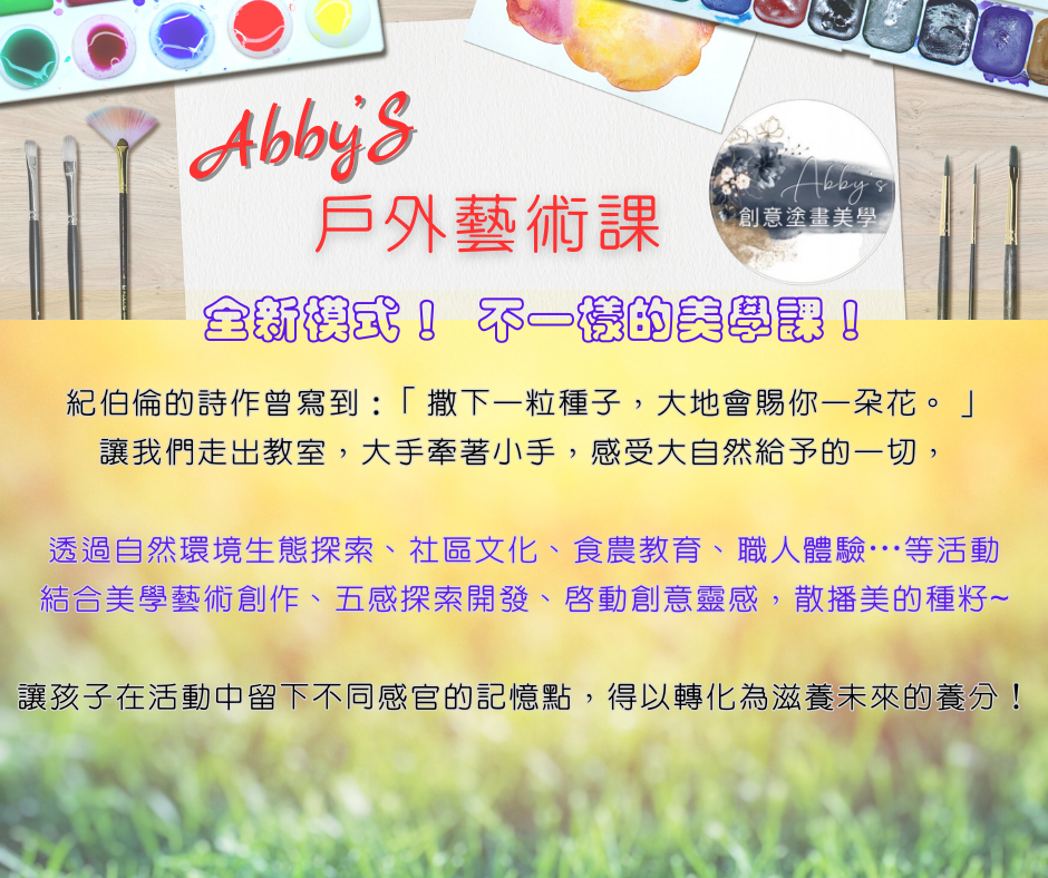 戶外藝術課旨在鼓勵孩子們在大自然中開心自由創作,啟發多重感官刺激!